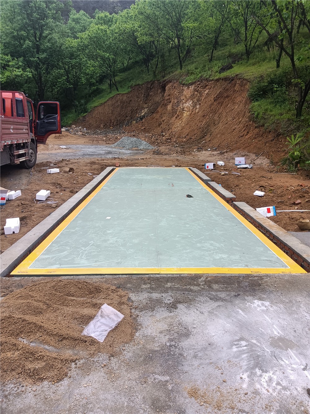 信陽(yáng)商城伏山鄉(xiāng)河沙廠100噸地磅施工案例