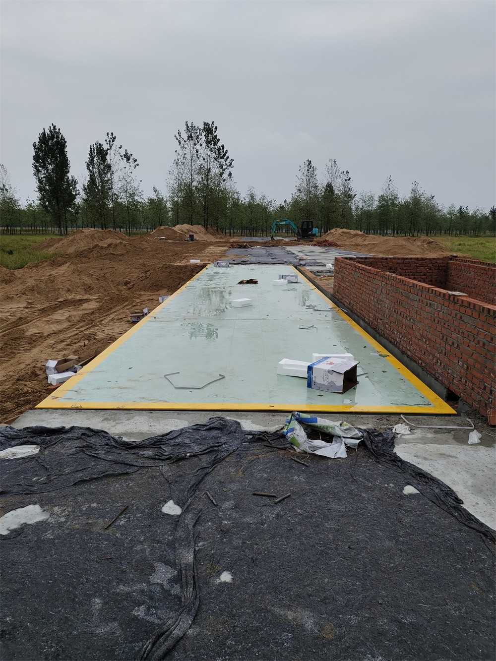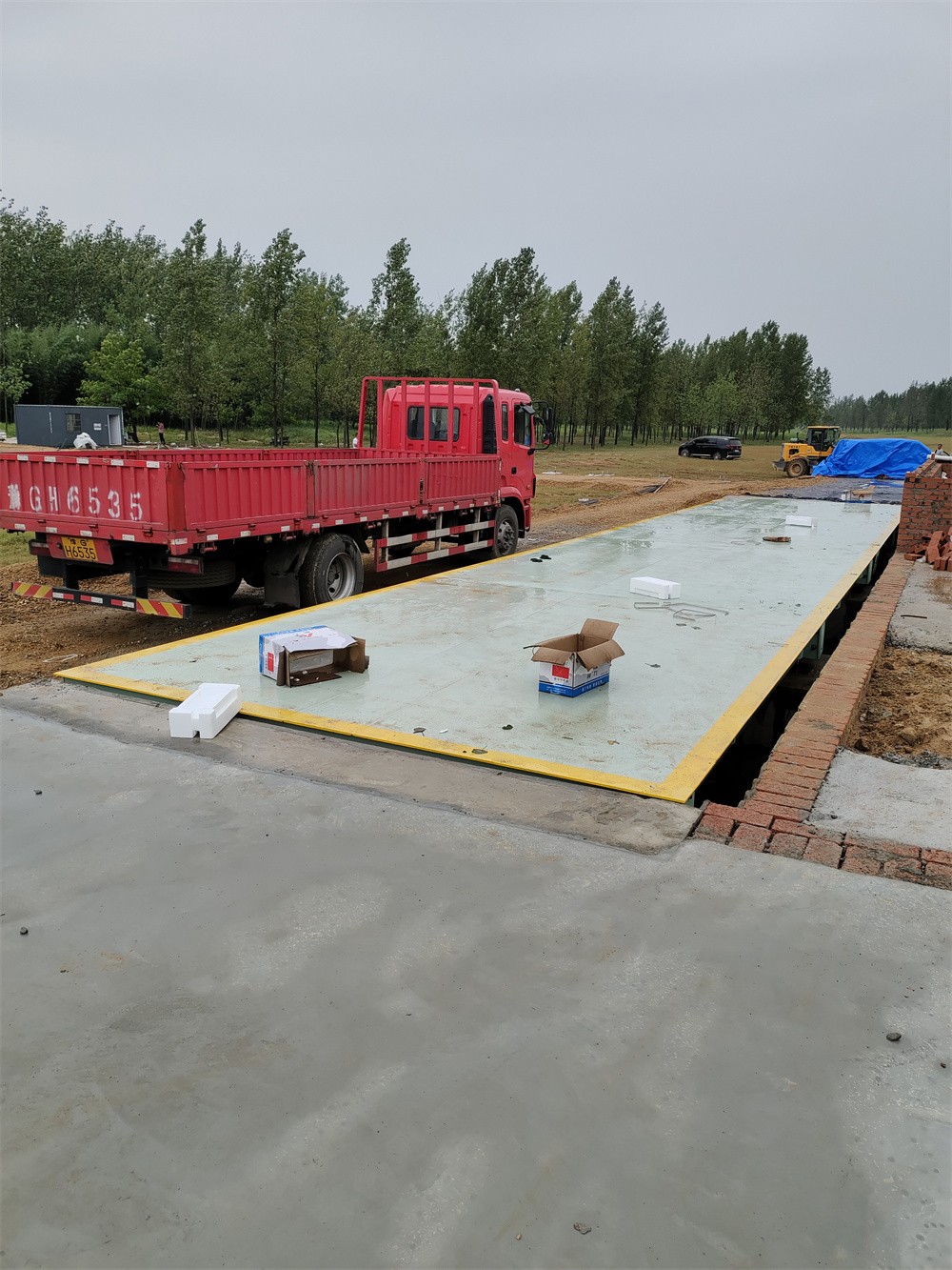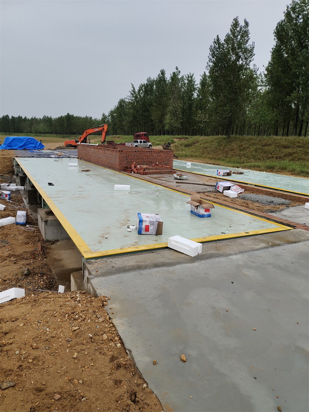 采購背景:信陽商城上石橋李湖村河沙廠,隸屬于信陽商城縣城投河沙治理項目,該項目覆蓋多個采沙點,故信陽商城縣城投一次性訂購了多臺中原恒瑞地磅廠地磅,分別安裝于不同的采沙點,滿足各河沙廠河沙銷售過磅稱重計量。此次信陽商城上石橋李湖村河沙廠安裝了兩臺3.4x16m定額150噸數(shù)字汽車衡,并排安裝于采沙場空地處,實現(xiàn)了一進一出雙向過磅稱重計量。汽車衡整體由4節(jié)3.4x4m秤臺搭接而成,秤臺面板厚12mm,底部7道300mmU型梁貫穿整體,并配備了柯力QS-D50T數(shù)字傳感器,柯力D12YP數(shù)字儀表,整秤稱量數(shù)據(jù)以數(shù)字信號傳輸,免校定,精準度高,秤體穩(wěn)固,耐用。此次信陽商城上石橋李湖村河沙廠訂購的兩臺中原恒瑞地磅廠3.4x16m定額150噸數(shù)字汽車衡已安裝完成并投入使用。