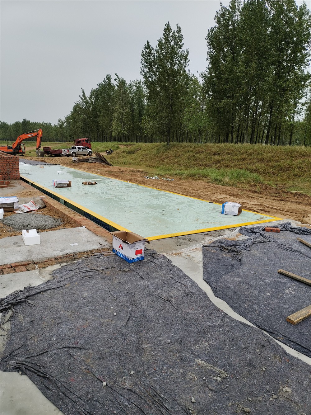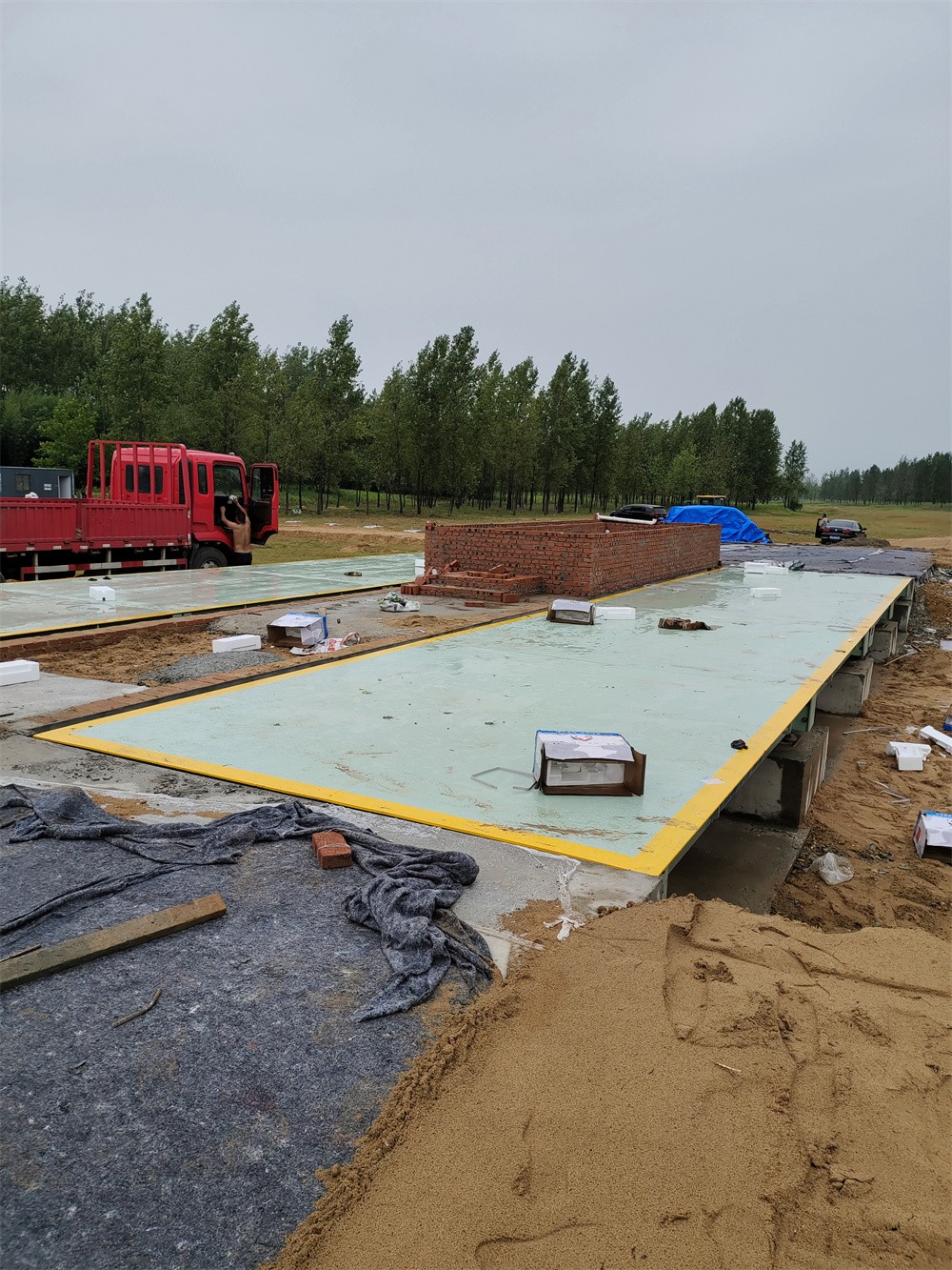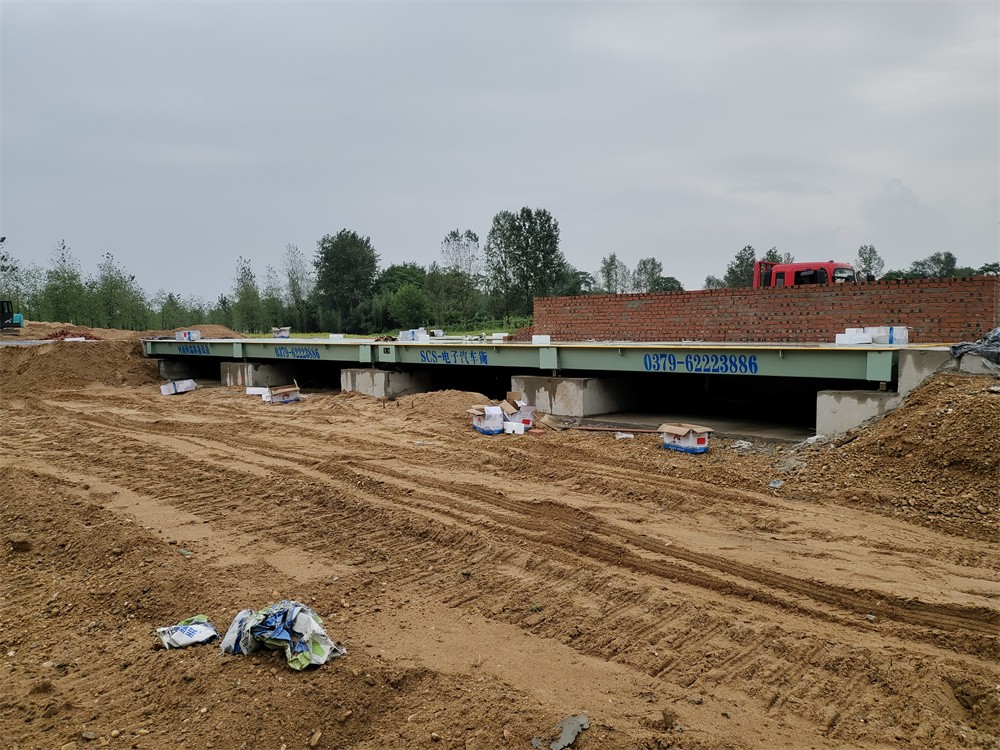 信陽商城上石橋李湖村河沙廠150噸雙向地磅施工案例